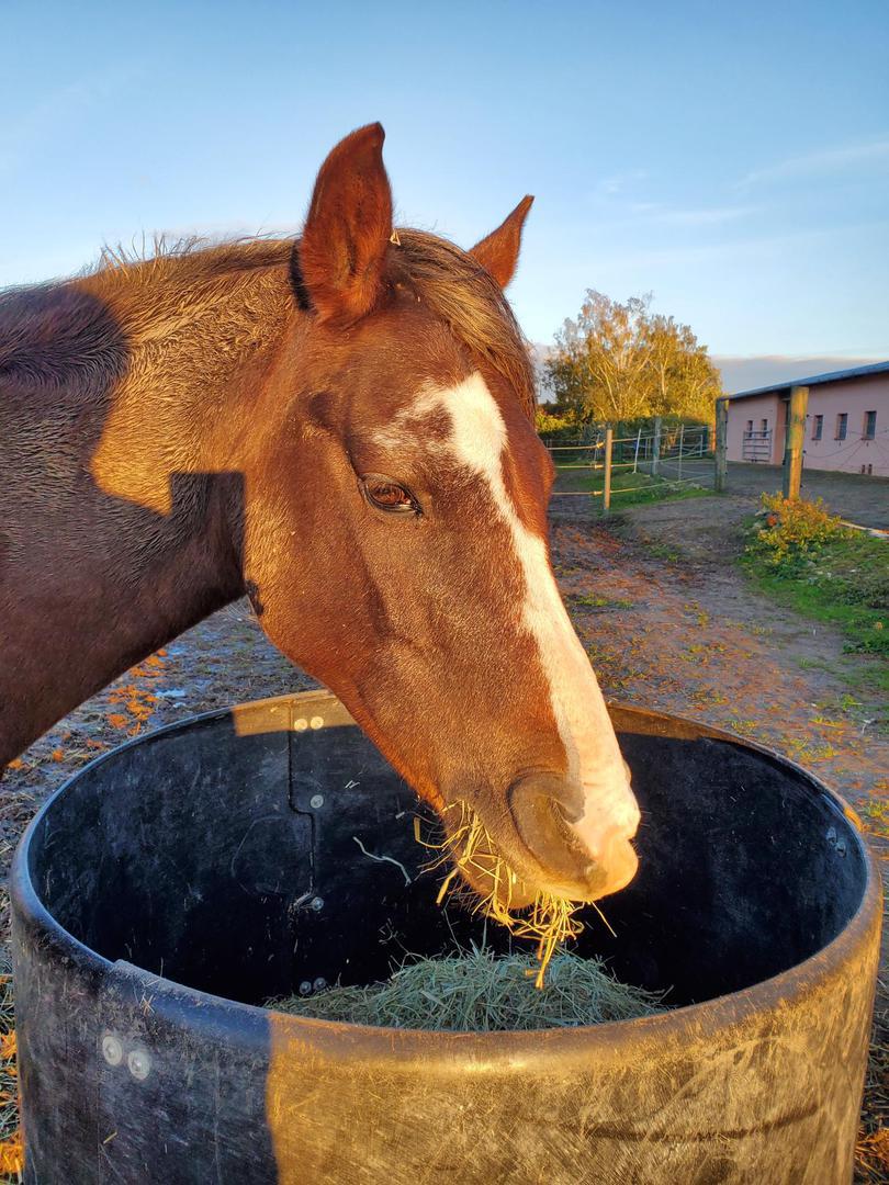 Hallo, ich heiße Fiona, bin 20 Jahre alt und gehöre zu den Hannoveranern. Ich bin hier im Dezember 2022 eingezogen und genieße nun auf der SiLu-Ranch meine Rente. Mein Frauchen und ich waren die letzten 10 Jahre ein tolles Team im Sport. Nachdem sich aber die ersten Alterswehwehchen eingestellt haben, haben wir uns dazu entschlossen, mir noch einen schönen Lebensabend mit gleichaltrigen Kumpels zu gönnen.